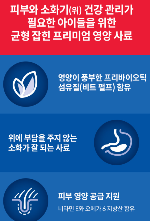 이 사료는 오메가 지방산이 포함돼 있어서 피부 컨디션 관리에 도움을 준다고 해요.